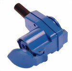 CEE-Winkelkupplung 230 V. Gehäuse aus Thermoplast, Leitungsaufnahme bis 3×2,5 mm², mit integrierter Schutzkontaktsteckdose.