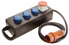 Stromverteiler. Stapelbar und daher äußerst Platz sparend zu lagern.
