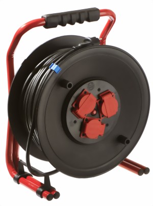 Trommelkörper aus extrem belastbarem vulkanisiertem Hartgummimaterial für härteste Beanspruchungen im professionellen Industrie- und Baustelleneinsatz. Äußerst schlagfest, öl-, fett- und benzinresistent, sehr gute Isolationseigenschaften, unzerbrechlich. Leicht und robust durch die Verwendung innovativster Materialien. Doppelrohrgestell, Bremse mit Sterngriff, ergonomischer Griff. Mit patentierter Leitungsführung.