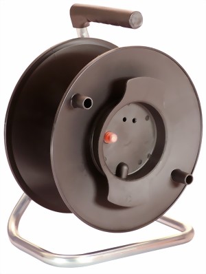 Geräte-Leertrommel aus hochbruchfestem Spezialkunststoff, stoßdämpfendes, stabiles, verzinktes Fußgestell, Feststellbremse, ergonomisch geformter Haltegriff, mit VDE-Thermoschutzschalter und Kabelhaspel. Bauteile geprüft nach TÜV / GS, mit entsprechend zugelassener Leitung, durch eine Elektrofachkraft anzuschließen.