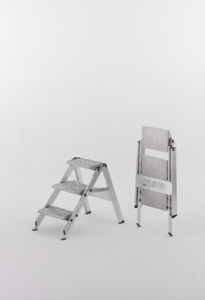 Die Sicherheitstreppe lässt sich gut bei Nichtgebrauch verstauen: Die Packmaße des zusammengeklappten Trittes betragen 112 x 55 x 7 cm. Gewicht: 6,9 kg.