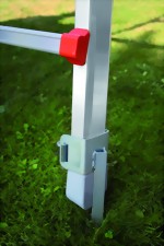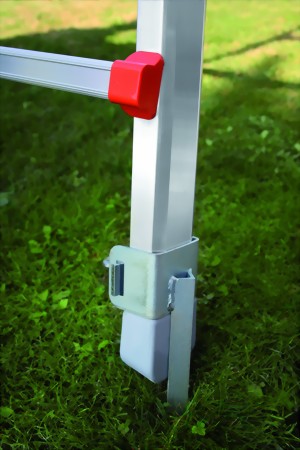 Bester Halt für Ihre WAKÜ Teleskopleiter sogar auf Rasen – die Erdspitzen werden einfach angeschraubt.