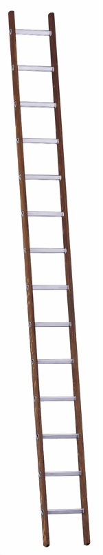 Lichte Weite: 300 mm, Außenbreite: 354 mm, Sprossenabstand: 280 mm. Die klassische Anlegeleiter mit bemerkenswerten Gewichtsvorteilen durch Alu-Sprossen, für harte Dauerbeanspruchung.